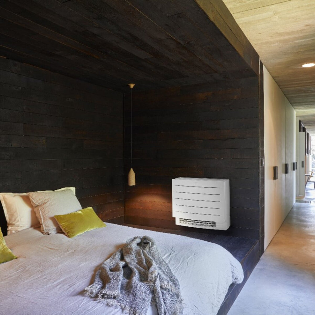 DAIKIN Perfera Floor ist die bodenmontierte Konsolenklimaanlage von DAIKIN . Die Inneneinheit dieses Modells, auch Konsole genannt, wird niedrig an der Wand montiert. Konsolen-Split-Klimageräte, eine sinnvolle Alternative zur Installation von Standardheizkörpern oder Gebläsekonvektoren, leiten den Luftstrom „auf Augenhöhe“ und werden insbesondere dann eingesetzt, wenn Sie die Inneneinheit nicht hoch oben an der Wand installieren möchten oder können. Konsolengeräte lassen sich problemlos auch unter einem Fenster installieren und eignen sich besonders für Dachgeschosswohnungen, in denen es immer schwierig ist, geeignete Räume zu finden, um oben klassische Splitgeräte zu installieren.