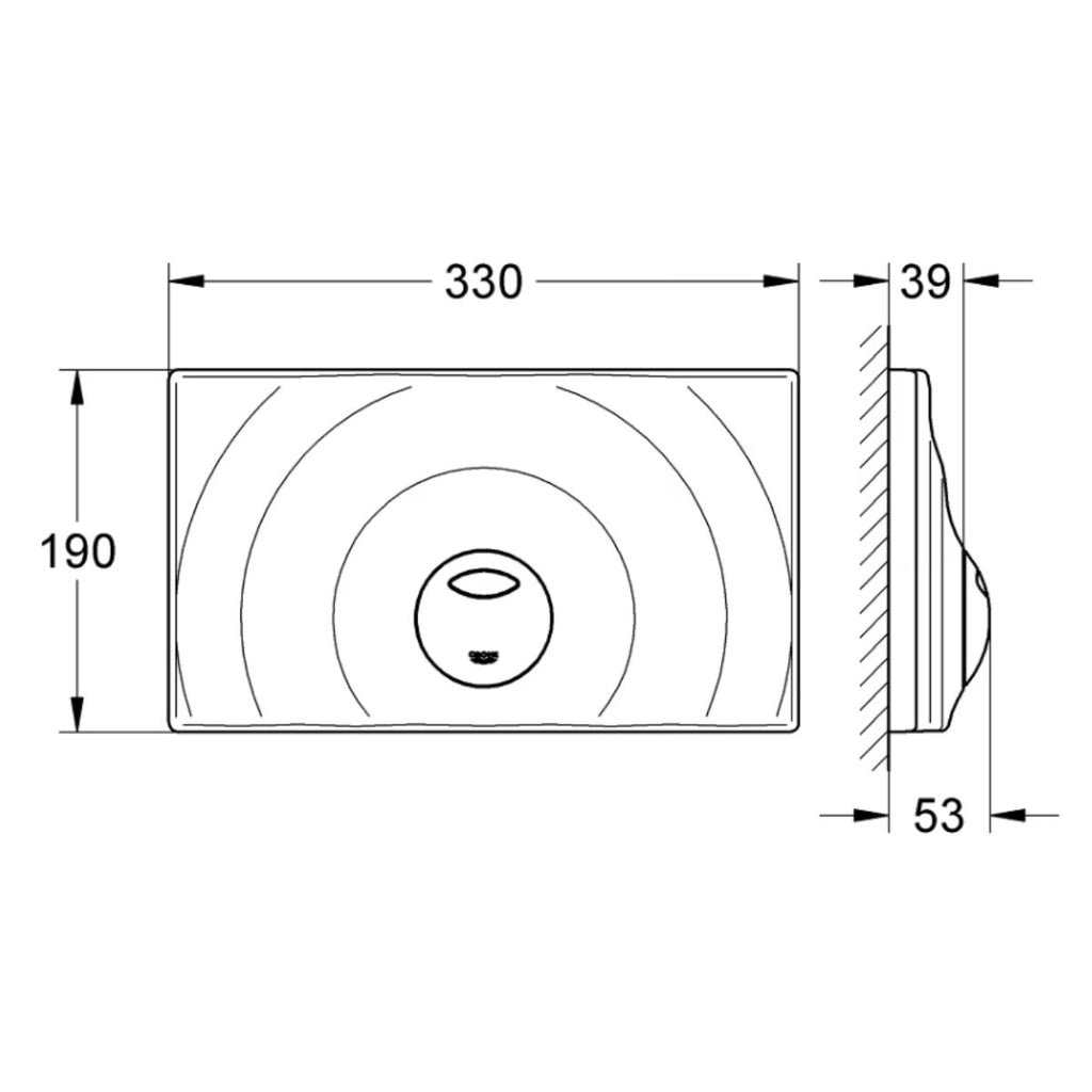 Mit Standardabmessungen von 330 mm Breite und 190 mm Höhe passt die Abdeckplatte perfekt in die Inspektionsschablone der GROHE Unterputzspülkästen. Die Montage ist einfach und kann sowohl vertikal als auch horizontal erfolgen, was gestalterische Freiheit und eine optimale Anpassung an das Badezimmerdesign ermöglicht.