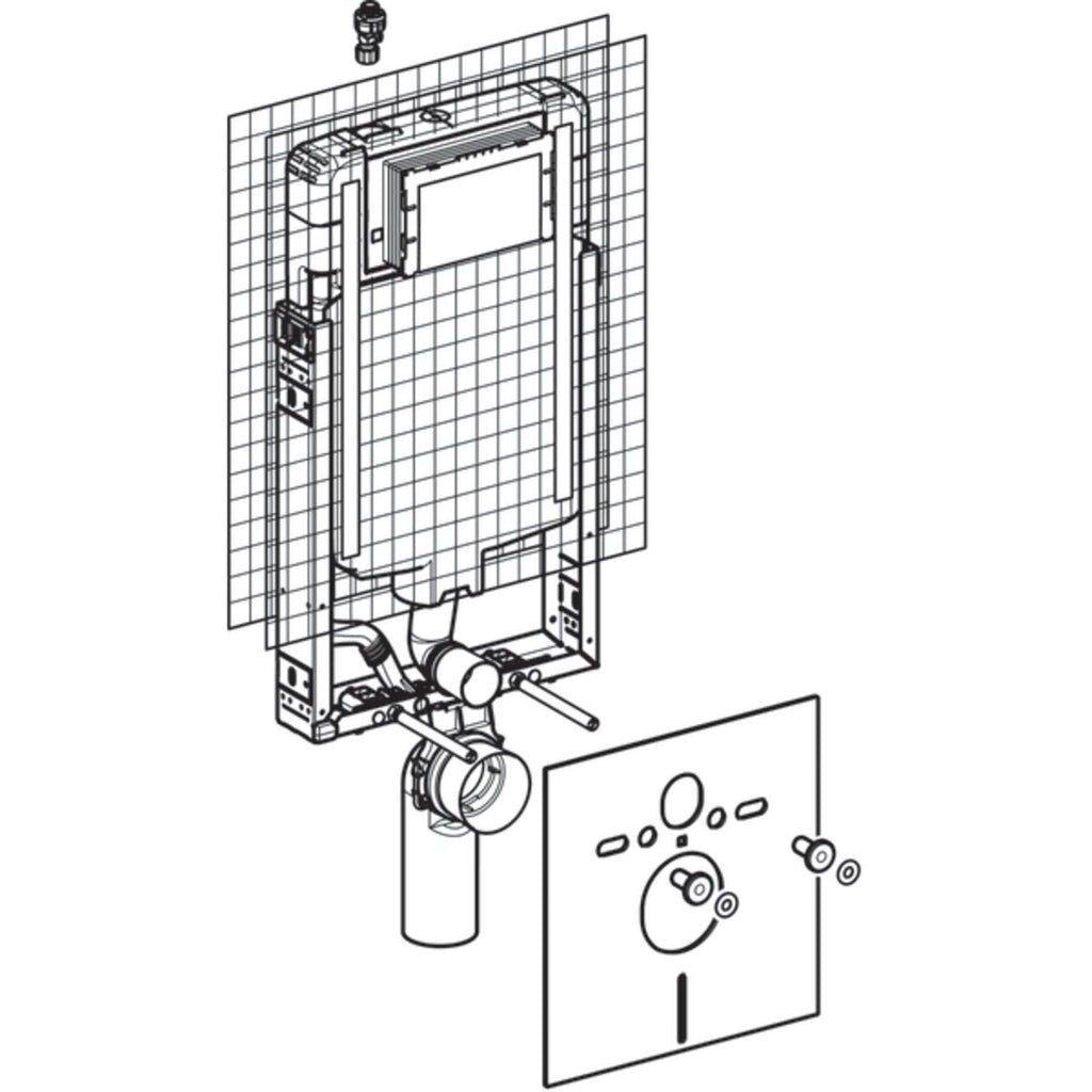 - Réservoir de chasse d'eau Geberit Sigma 8, y compris module d'installation Combifix pour WC suspendu et installations encastrées sur des murs en maçonnerie.