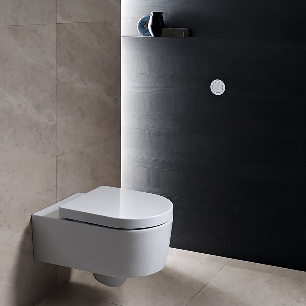 Les télécommandes Geberit offrent de nouvelles façons de penser le design de la salle de bain. La commande pneumatique Geberit Type 01 vous permet de concevoir la salle de bain en fonction des besoins et des goûts personnels. Petit et discret, il peut être positionné jusqu'à une distance de 1,70 mètre du réservoir. La forme arrondie d'un diamètre de 80 mm et la couleur blanche conviennent parfaitement à un style classique et moderne. La double commande, qui peut être activée avec une légère pression, a été conçue de manière adéquate pour économiser l'eau. Les produits Geberit sont fiables car ils ont été testés pour les fuites et sont couverts par une garantie de disponibilité des pièces de rechange de 25 ans. Le bouton à distance Geberit peut être encastré, sur des murs légers ou en briques.