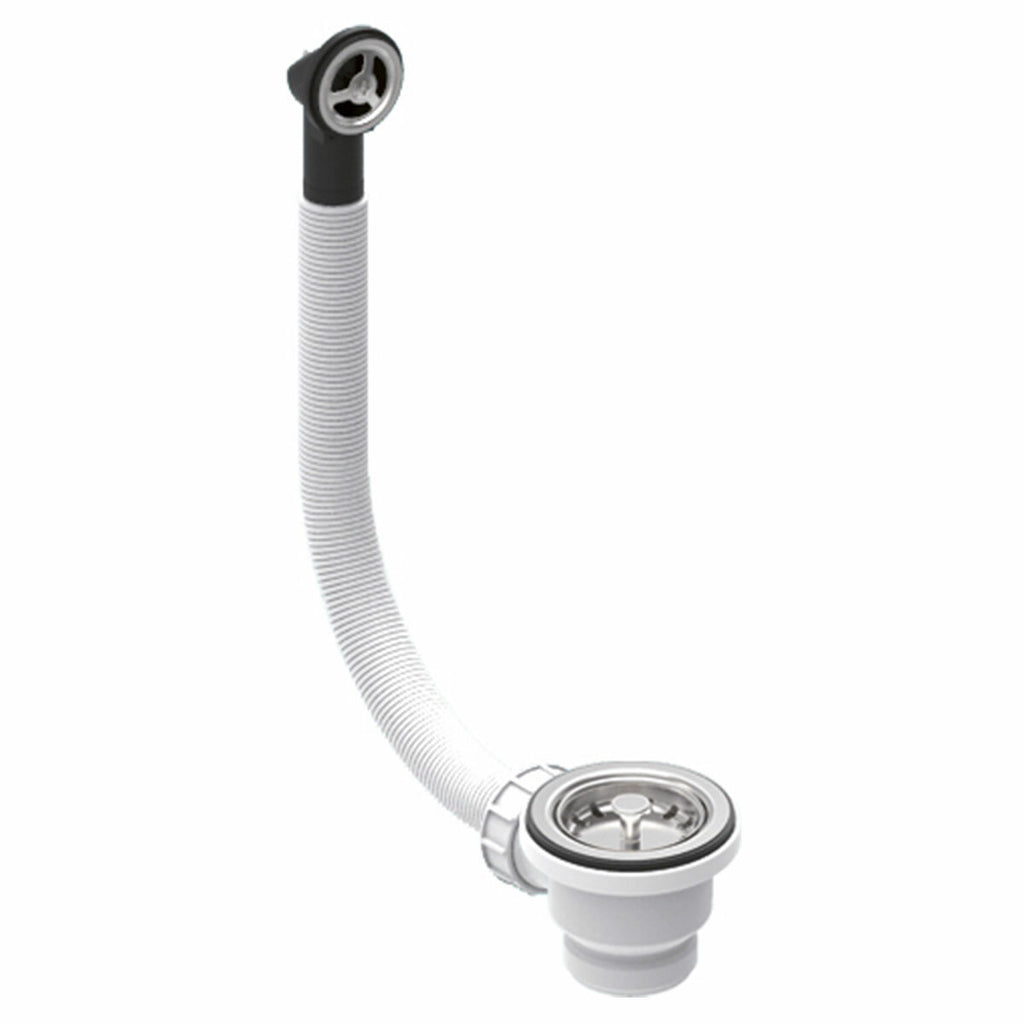 La bonde est conçue pour être insérée dans l'évier de la cuisine: elle est livrée avec un panier et un trop-plein rectangulaire standard. L'alésage a un diamètre de 70 mm tandis que l'échappement est de 1" 1/2.