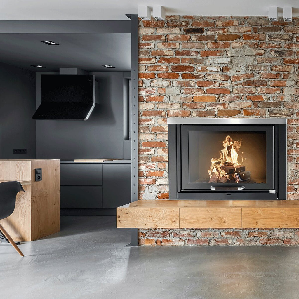 The TKR 27 Klover thermo fireplace has an innate elegance. Its defined and modern shapes frame a large combustion chamber with silk-screened ceramic glass , which gives space to the view of a live and natural flame that creates incredible atmospheres within your home spaces. The combustion chamber door has a latch- type opening which promotes convenience in using the product, and in the same vein, there is also the cold handle which allows vast freedom in managing the openings and loading wood. The fire surface is made of refractory brick and is therefore characterized by sturdiness and durability.