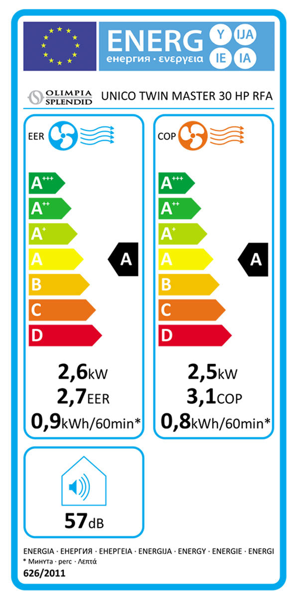 Unico Twin Master 30 HP RFA 9000 BTU: ideal for rooms up to 25 m2 with an average height of 2.7 m.