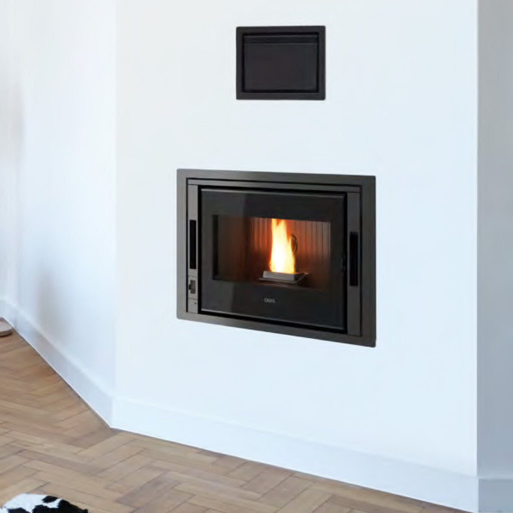 The pellet loading hatch, to be combined with the Zefiro 9 fireplace insert by CADEL , is the accessory that will make using the pellet insert more practical, fast and clean. In the absence of this hatch, the insert must be loaded by extracting the machine body from the structure. The trapdoor, which is mounted on the upper part of the insert by inserting its flexible tube on the tank, instead allows you to load the pellets into the machine in a much simpler and faster way. Just open the flap to load the insert tank with a scoop or using the chute supplied.