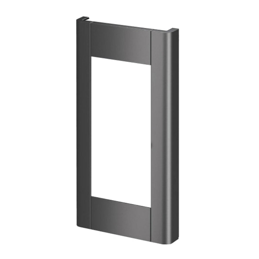 The CADEL Prince 11 pellet stove has a simple but elegant design: the structure is completely black and the large and enveloping front, in titanium metal (light gray), with its rounded edges, surrounds the door like a frame, highlighting the heat of the flame.