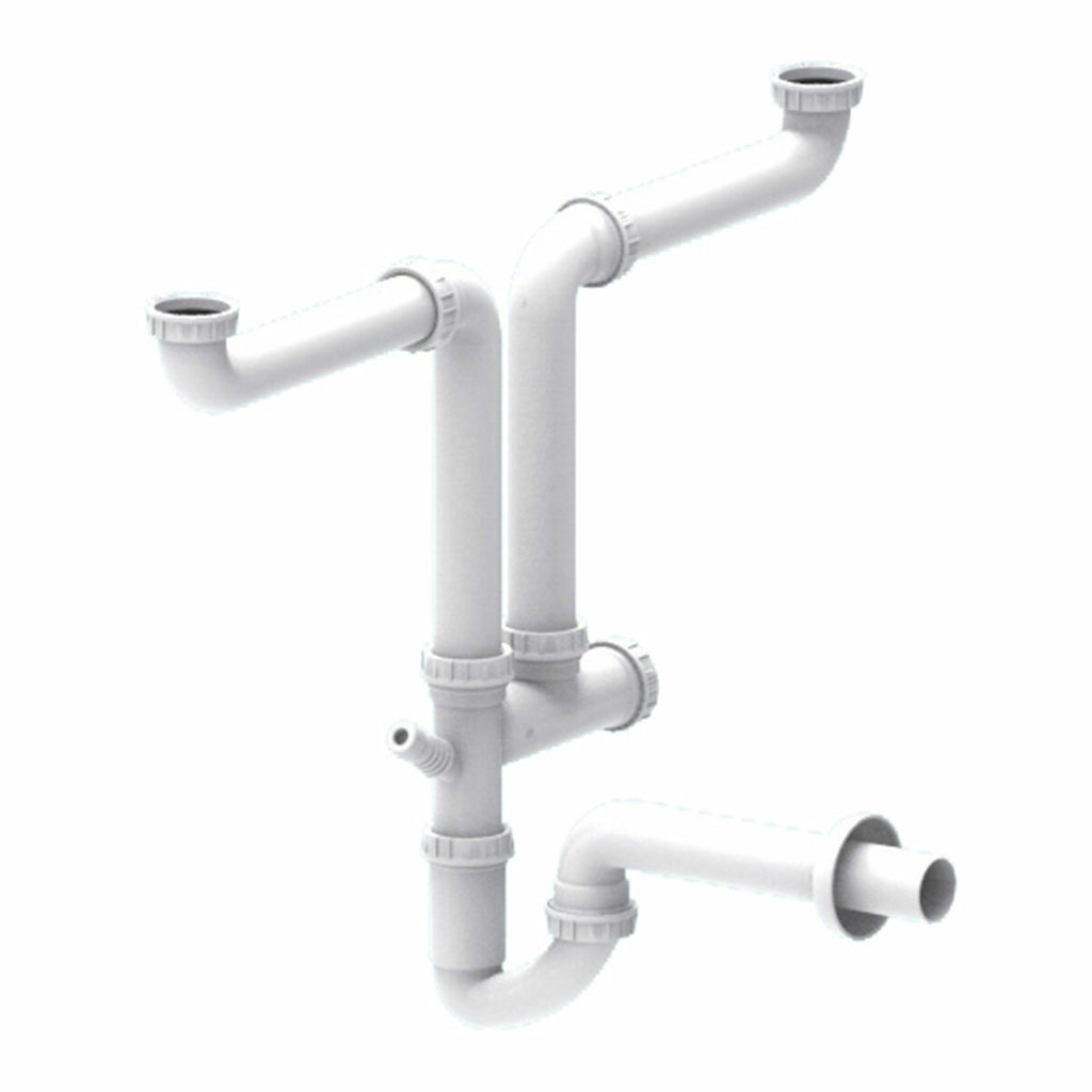 Here is the Valsir self-cleaning and space-saving siphon that is suitable for kitchens with double sinks, guaranteeing maximum drainage efficiency and an excellent ability to combat odours. Preparation for dishwasher connection with closing cap.